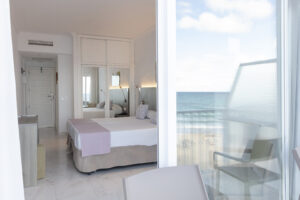 Estas habitaciones están equipadas con televisión, nevera (servicio de pago), caja fuerte (servicio de pago), escritorio e internet wifi, además de un elegante baño privado con artículos de aseo, albornoz y detalles pensados para su máxima comodidad. Como toque especial, disponen de tetera con reposición diaria de café y té, ideal para disfrutar de un momento de calma en cualquier momento del día, ya sea al despertar o al finalizar una jornada frente al mar.